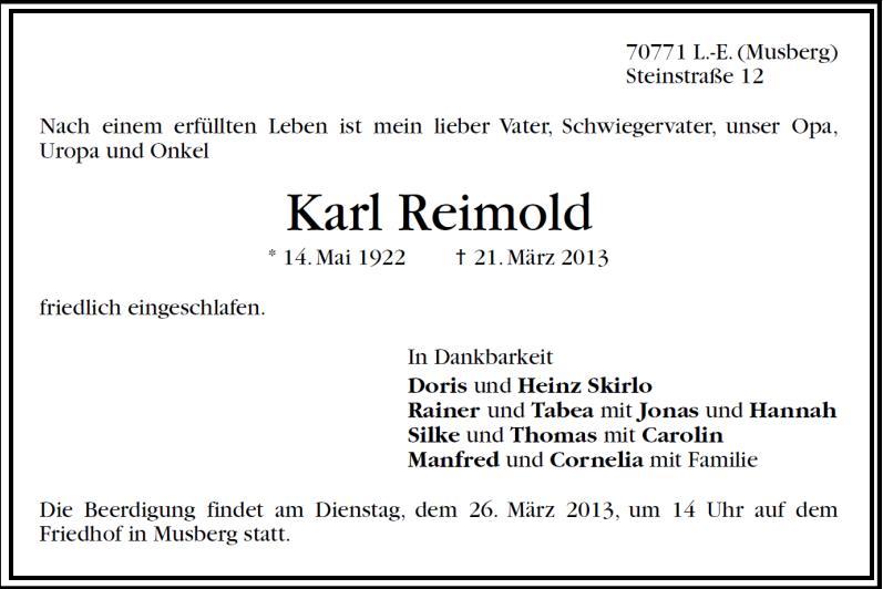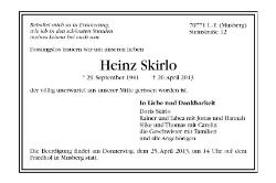 Bestattungstermin: 28.5.2013 um: 14 Uhr