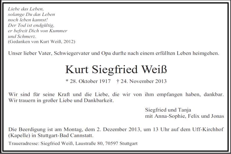 Bestattungstermin: 27.12.2013 um: 11 Uhr
