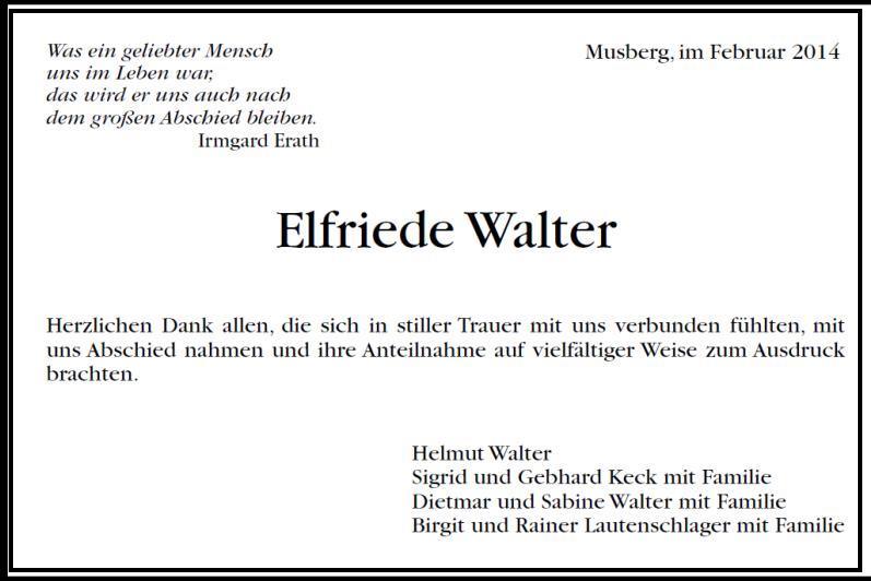 Bestattungstermin: 20.2.2014 um: 14 Uhr