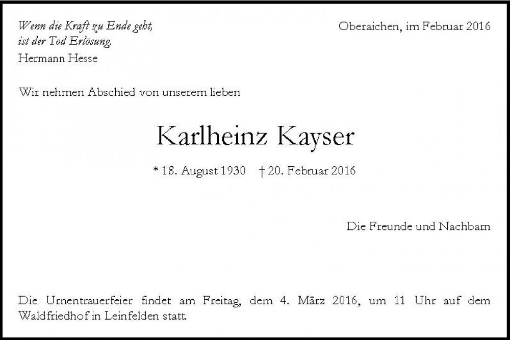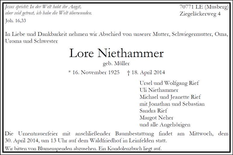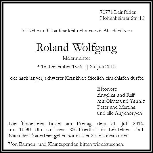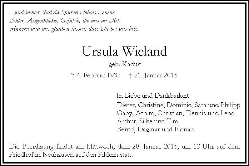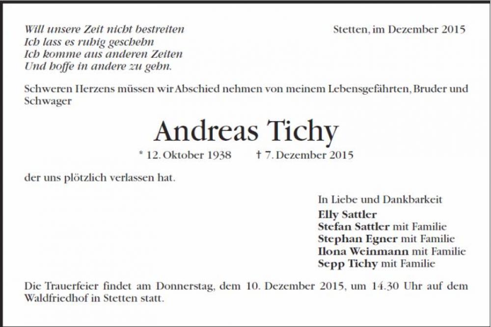 Bestattungstermin: 27.4.2016 um: 14 Uhr