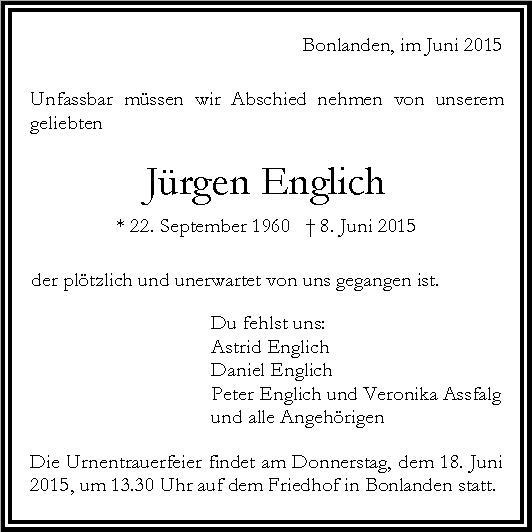 Bestattungstermin: 15.6.2015 um: 14 Uhr