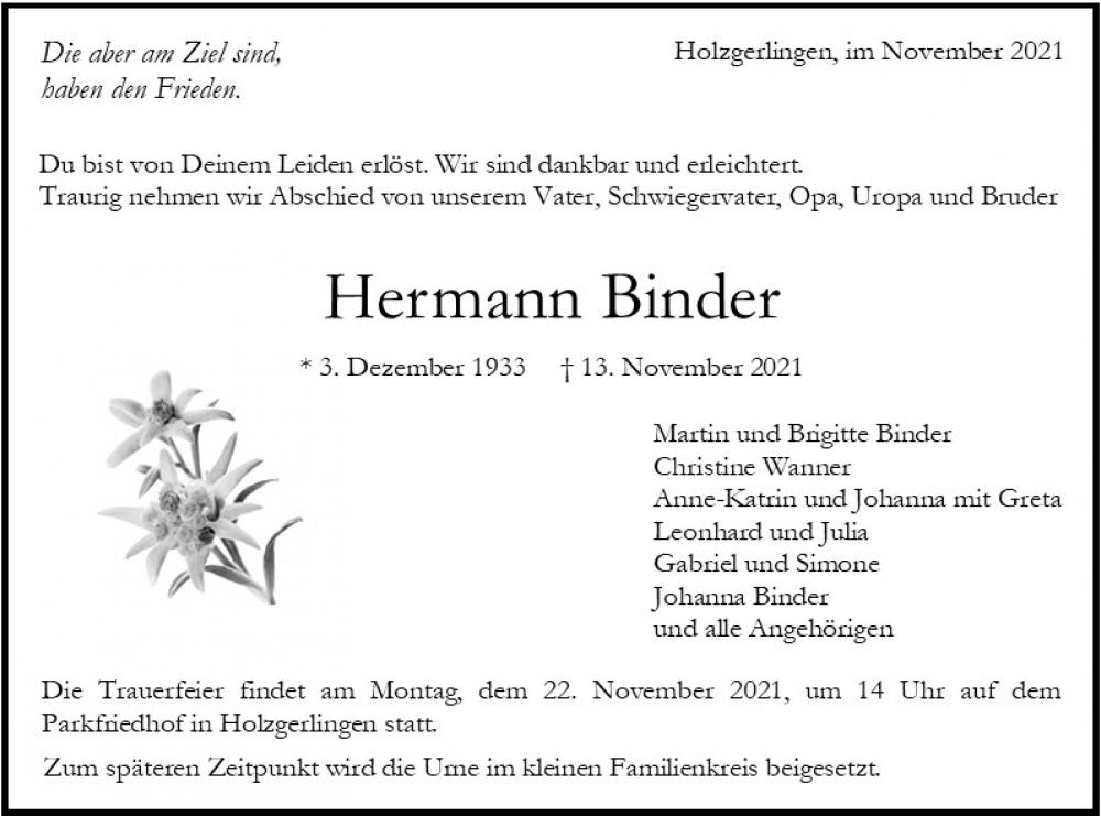 Bestattungstermin: 23.5.2024 um: 14:00 Uhr