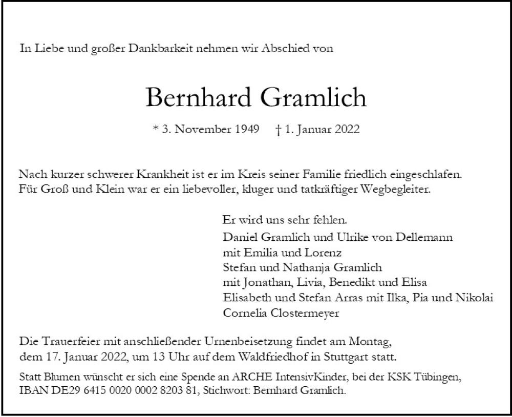 Bestattungsort: Ev. Martinskirche/Friedhof Stuttgart-Plieningen