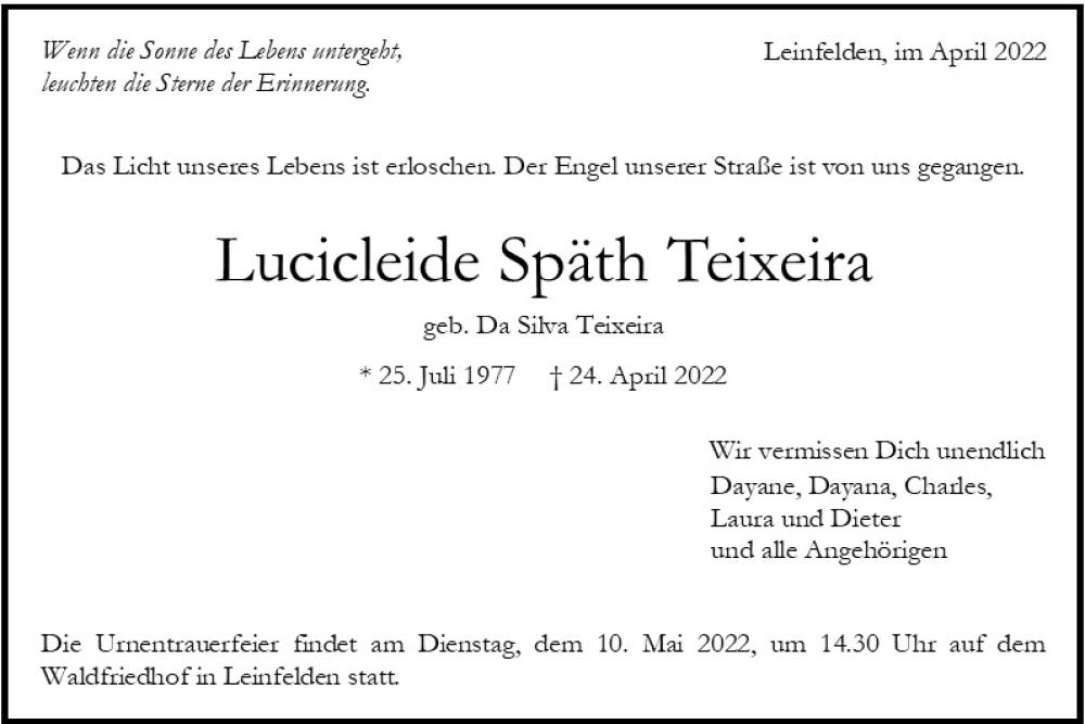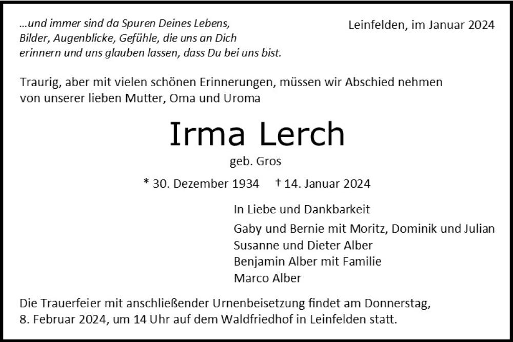 Bestattungstermin: 23.4.2024 um: 14:00 Uhr