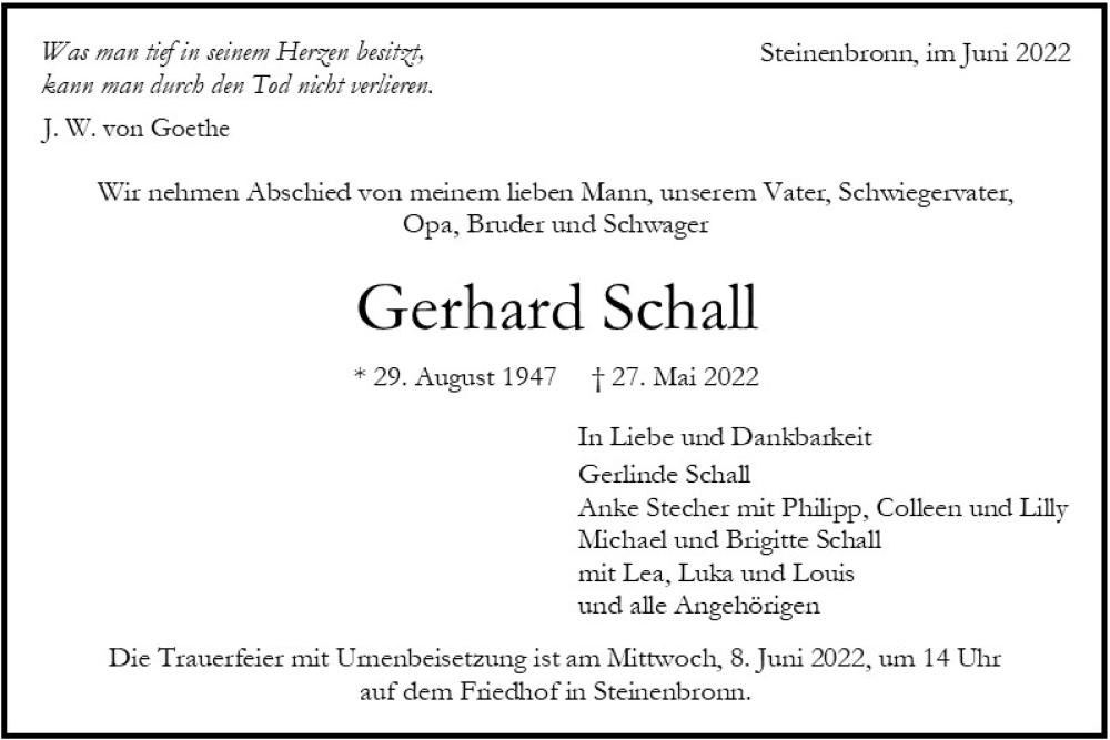 Bestattungstermin: 22.6.2024 um: 14:00 Uhr