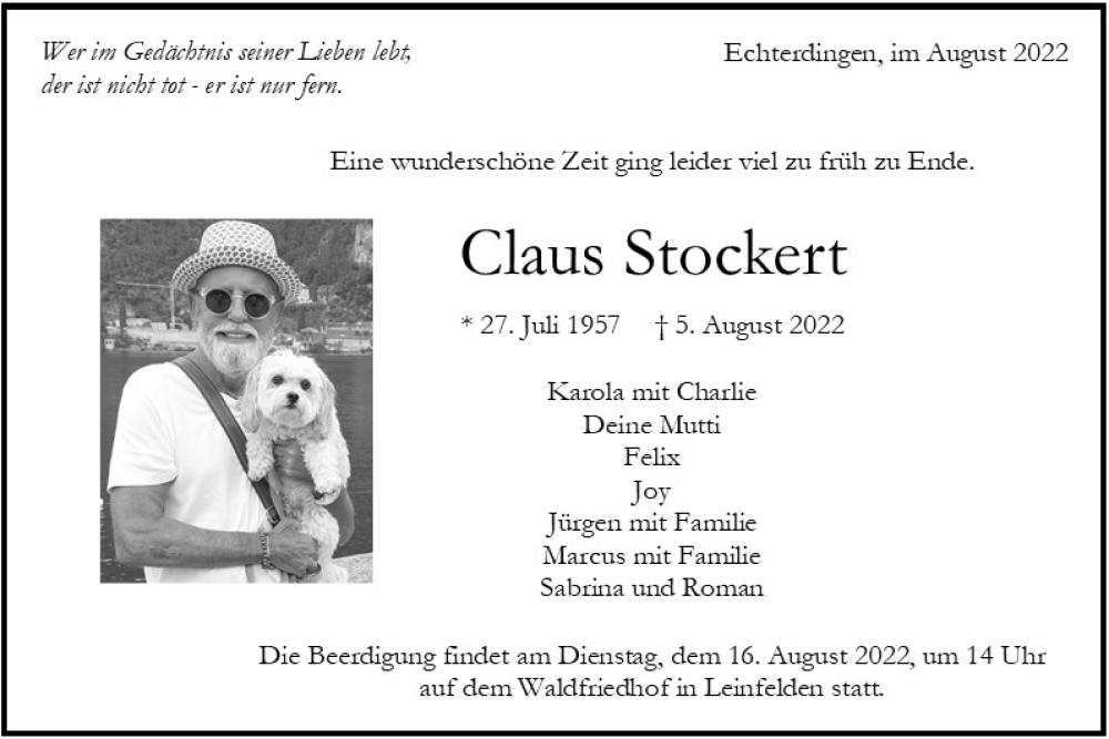 Bestattungstermin: 16.8.2024 um: 13:00 Uhr