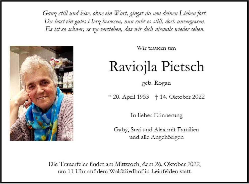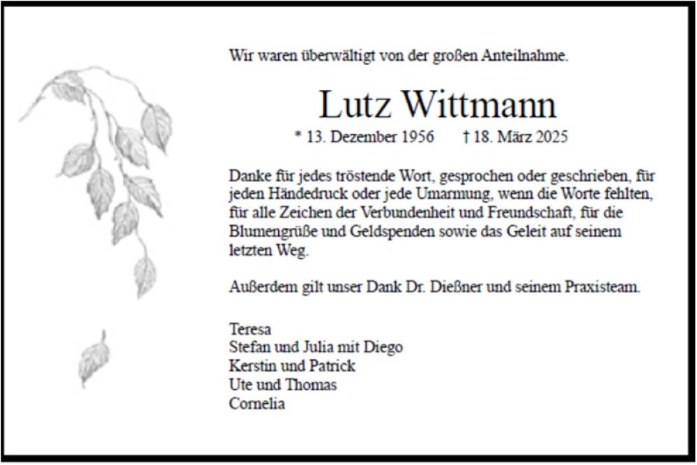 Bestattungstermin: 8.10.2025 um: 13:30 Uhr