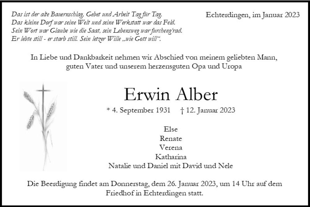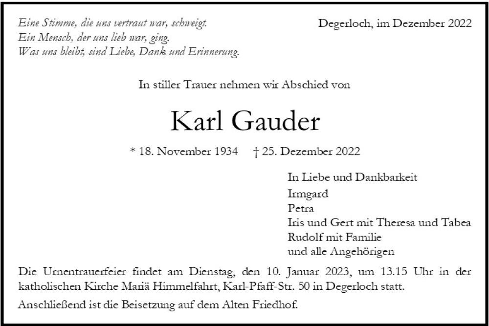 Bestattungstermin: 16.1.2025 um: 14 Uhr