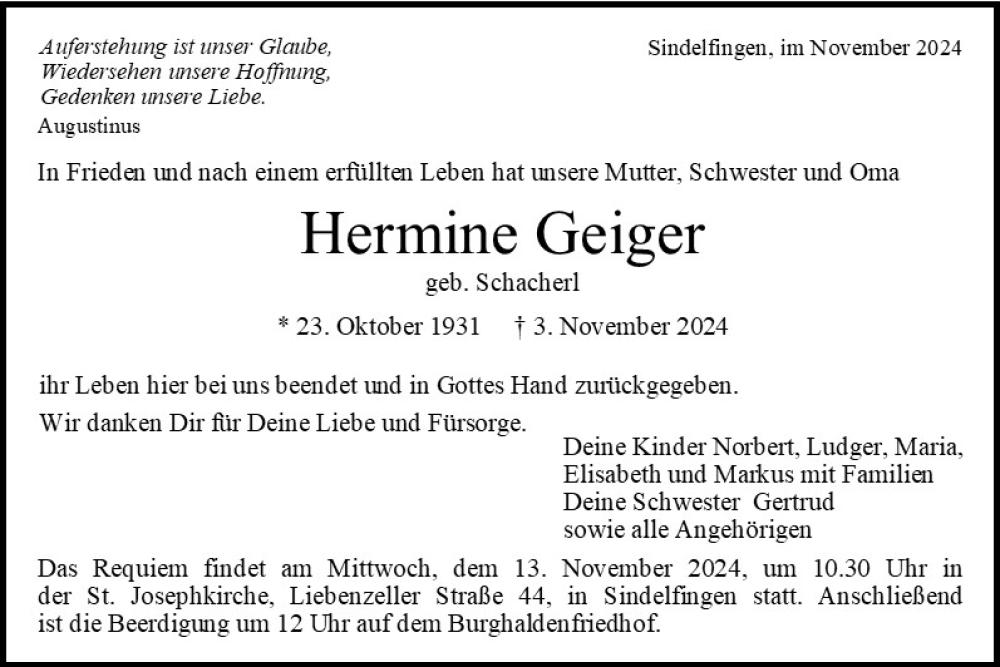 Bestattungstermin: 8.11.2024 um: 11 Uhr
