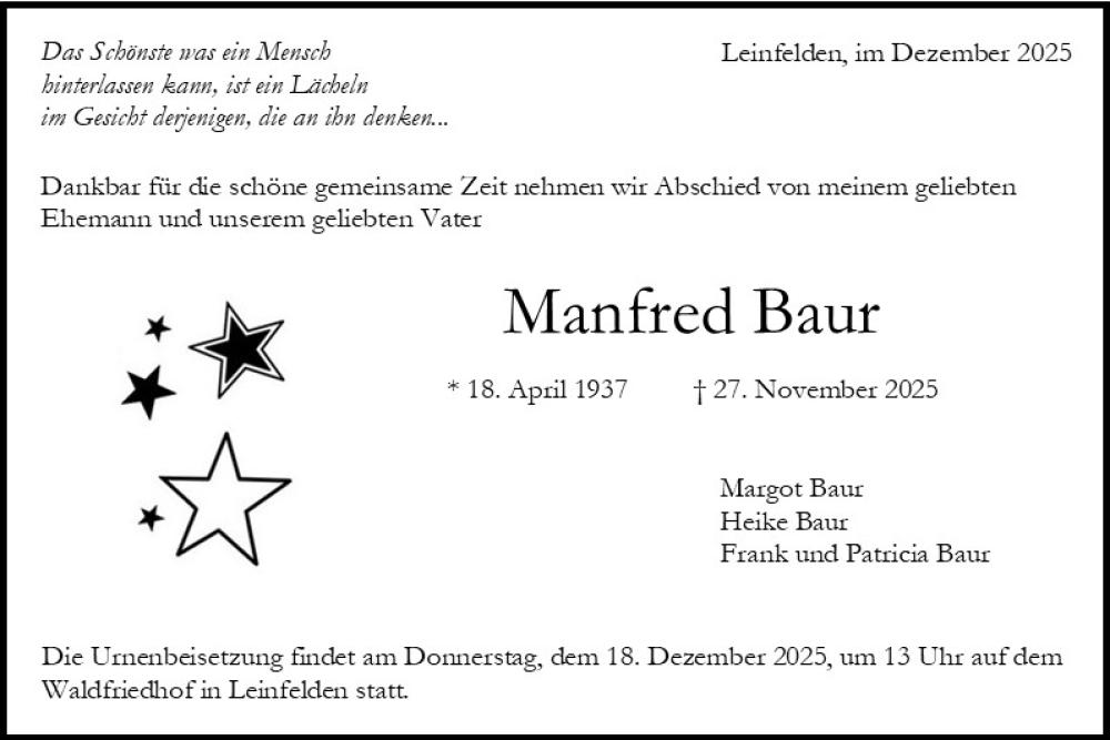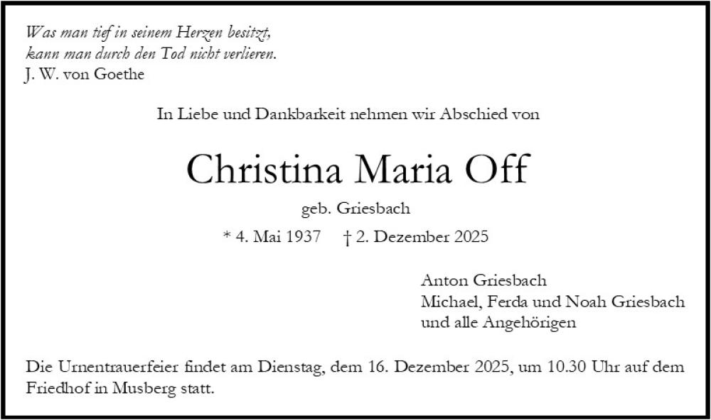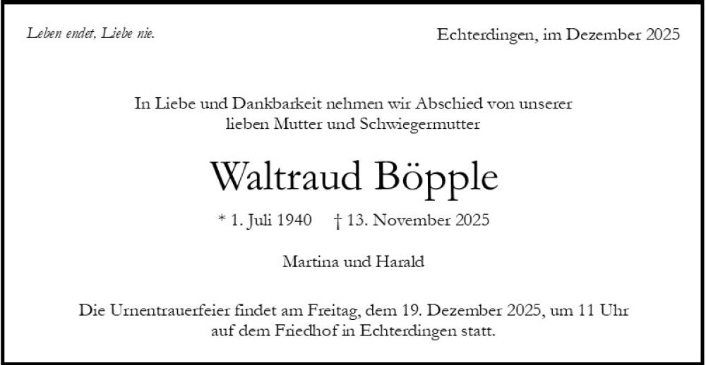 Bestattungstermin: 18.12.2025 um: 14:00 Uhr