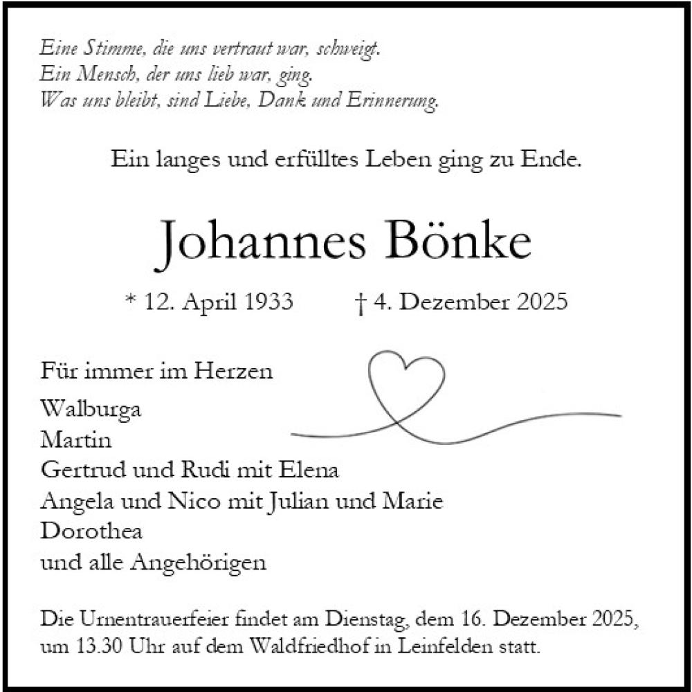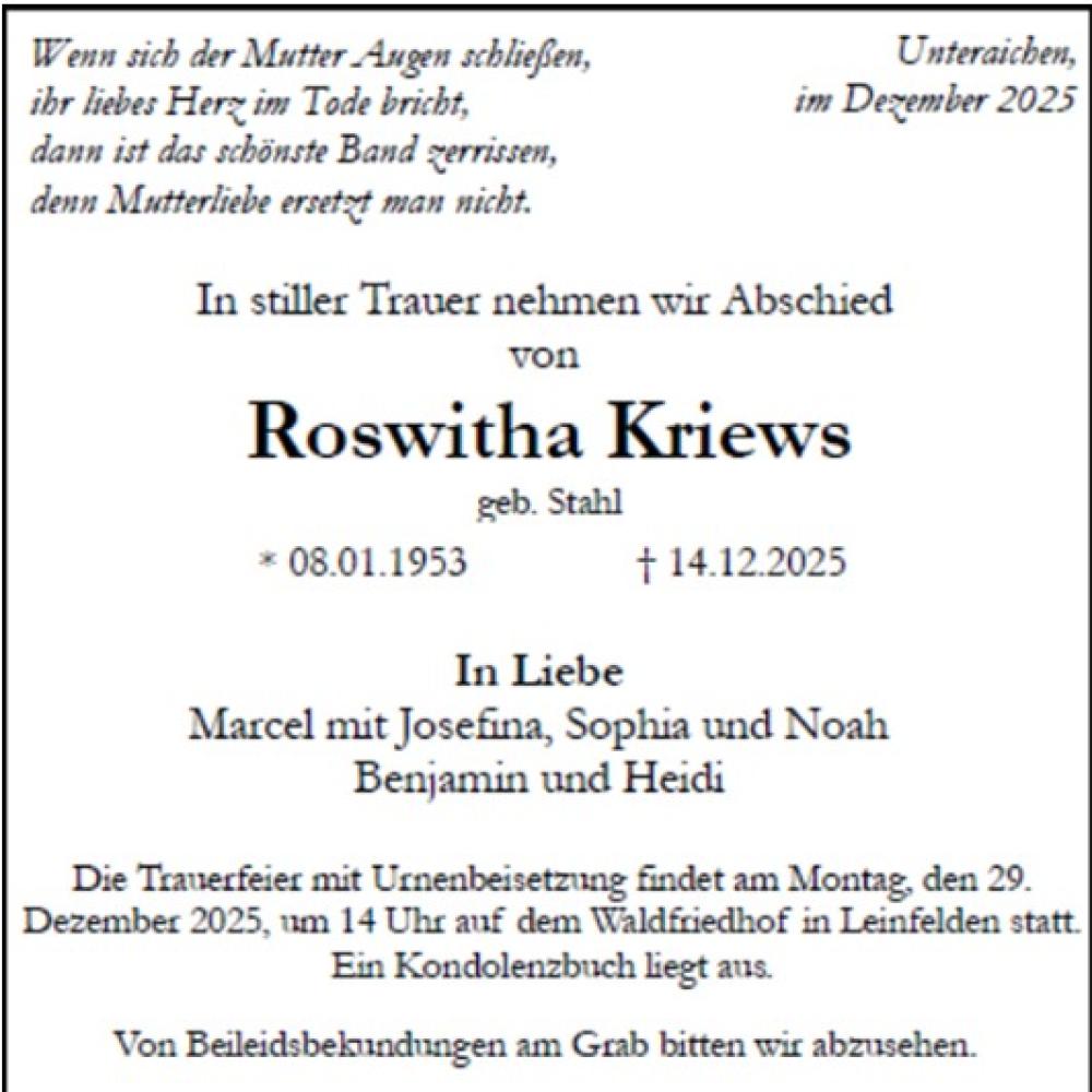 Bestattungstermin: 22.12.2025 um: 12 Uhr