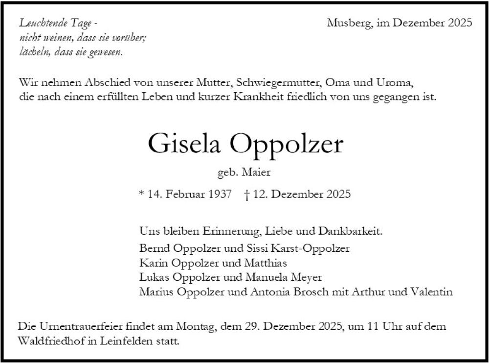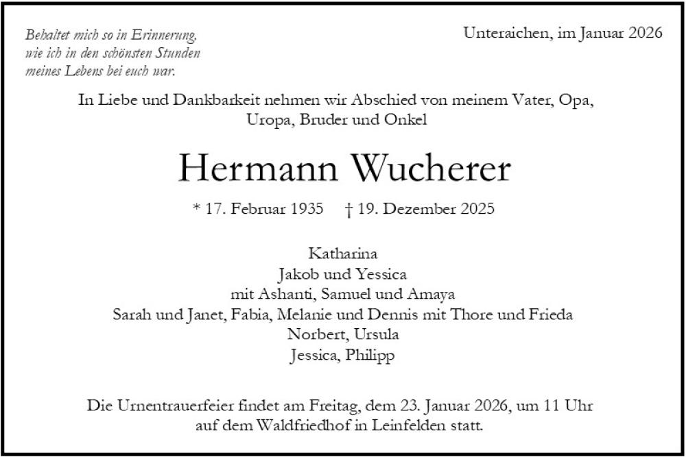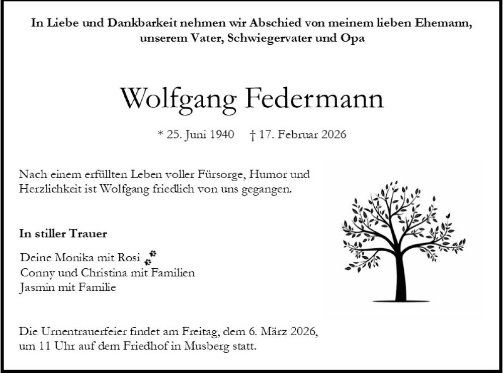 Bestattungstermin: 6.2.2026 um: 11:00 Uhr