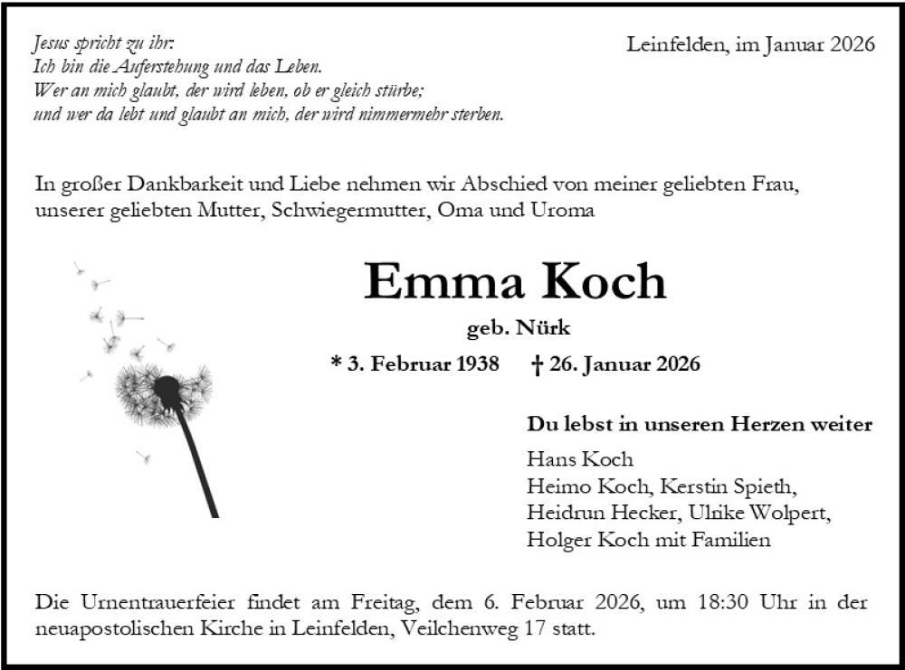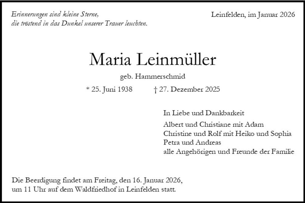 Bestattungstermin: 4.2.2026 um: 13:00 Uhr