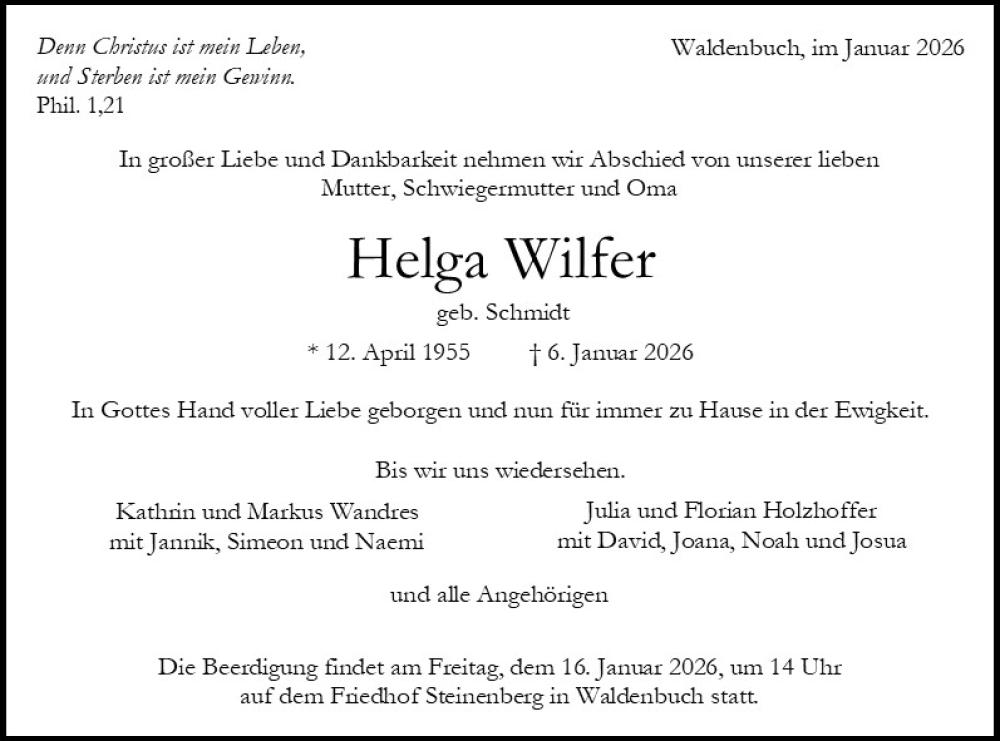 Bestattungstermin: 7.1.2026 um: 11:00 Uhr
