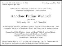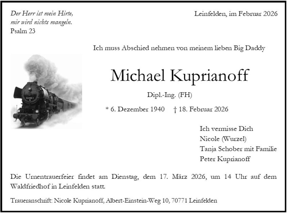 Bestattungstermin: 24.2.2026 um: 14 Uhr