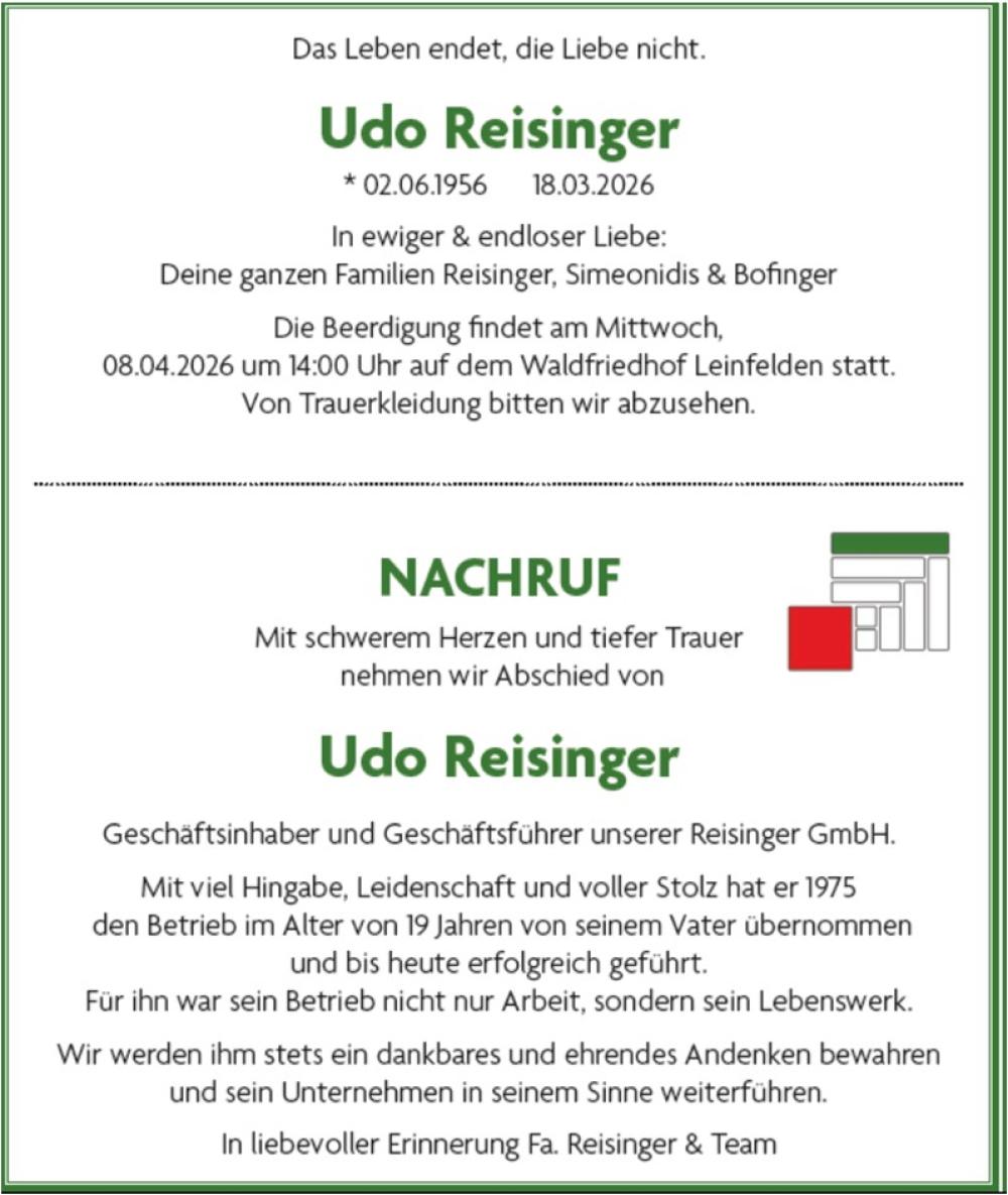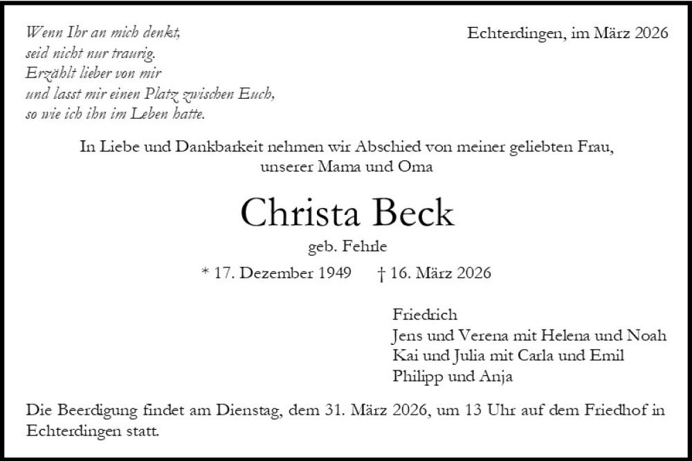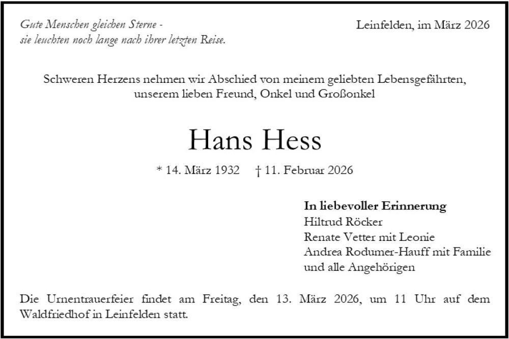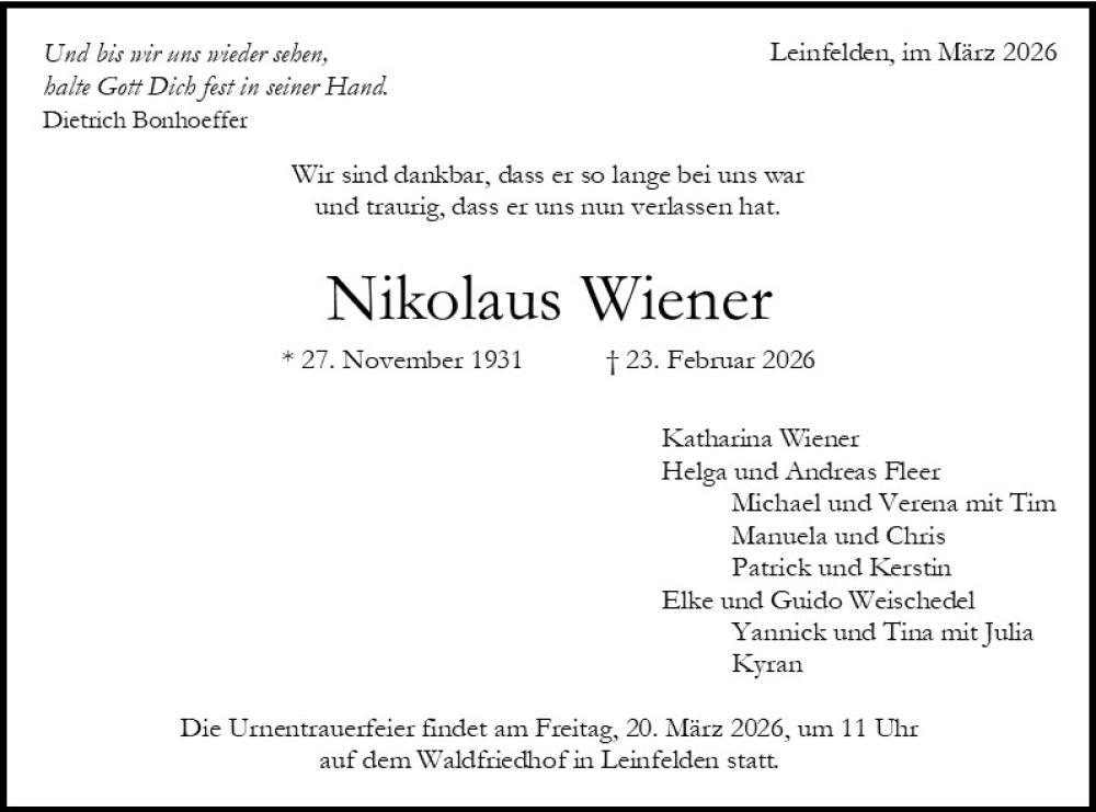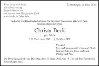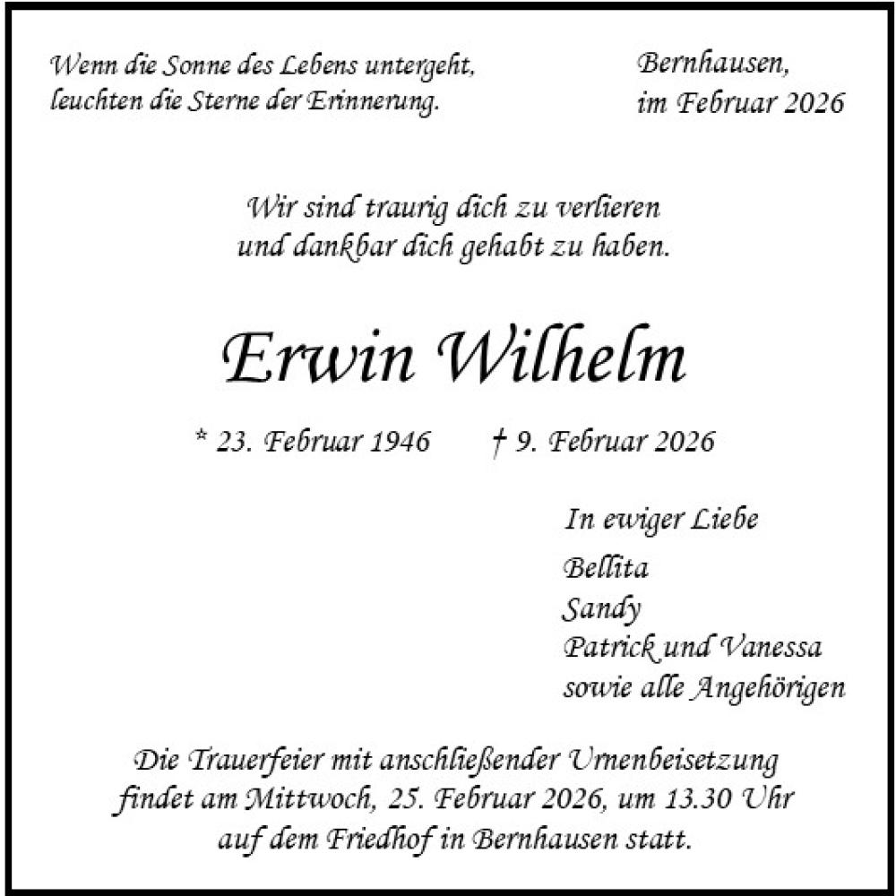 Bestattungstermin: 26.2.2026 um: 13.30 Uhr