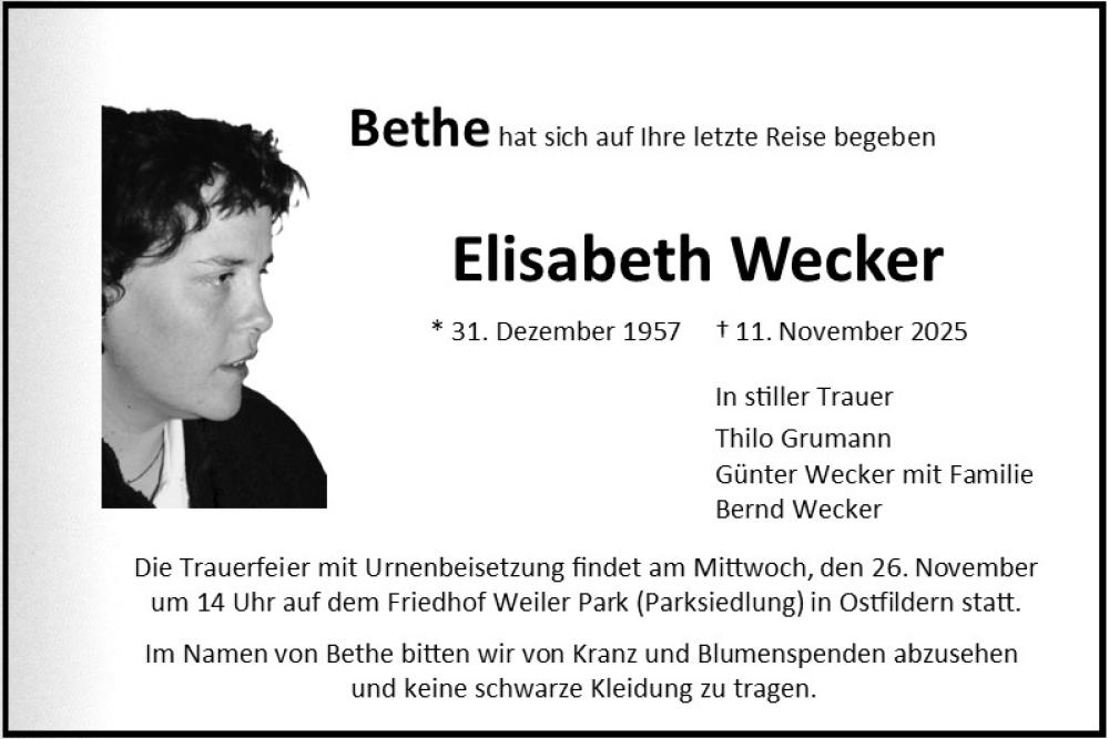 Bestattungstermin: 26.11.2025 um: 14:00 Uhr